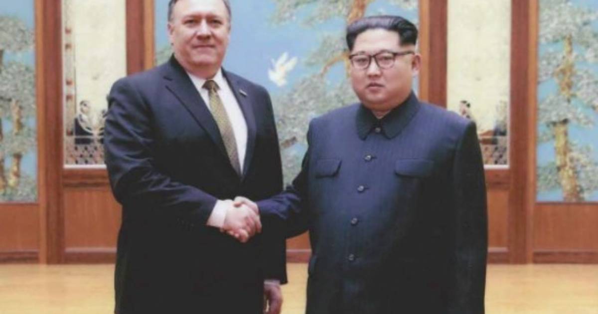 Las dos fotos publicadas por Sanders en su cuenta de Twitter muestran a Pompeo, que entonces era el director de la CIA, estrechando la mano de Kim, en una ocasión mirando a las cámaras y en otra mirándose a los ojos.