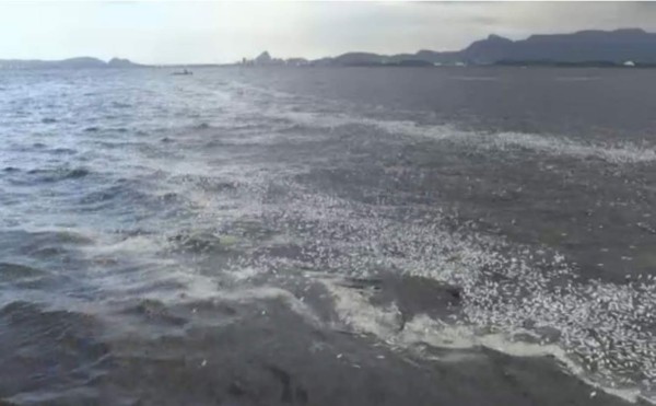 Miles de peces muertos fueron hallados en las orillas de la contaminada bahía de Río de Janeiro, cerca del aeropuerto internacional y a unos 30 km de donde se celebrará la regata olímpica en siete meses.