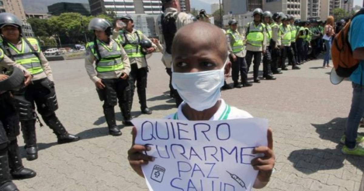 'Quiero curarme, paz, salud', así se leía la petición del niño venezolano, Oliver Sánchez de ocho años en una protesta en febrero.