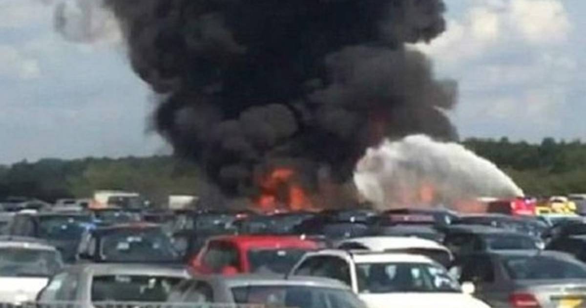 La aeronave se estrelló en un lugar de subasta de vehículos, donde provocó el incendio de varios coches.