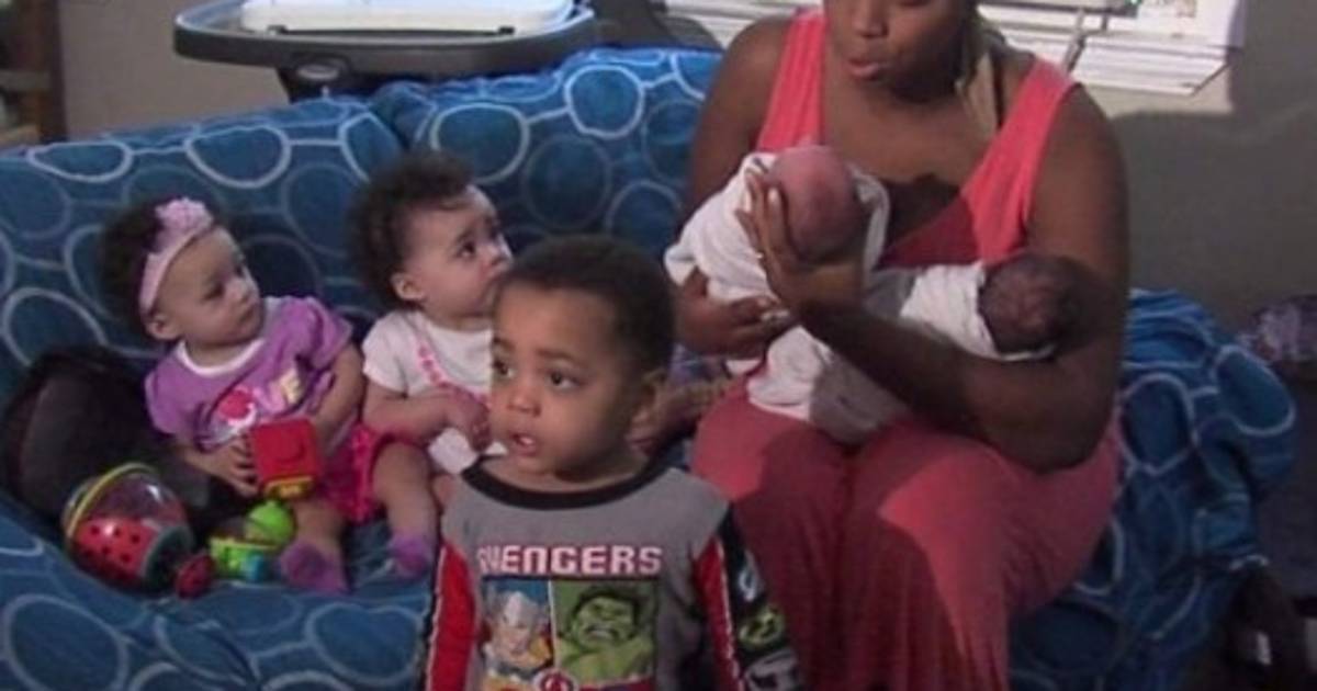En su primer parto de melliezos, uno de ellos falleció, pero el sobreviviente, Danarius, es un bebé muy activo. Ella también tiene mellizas de un año, Delilah y Davina.