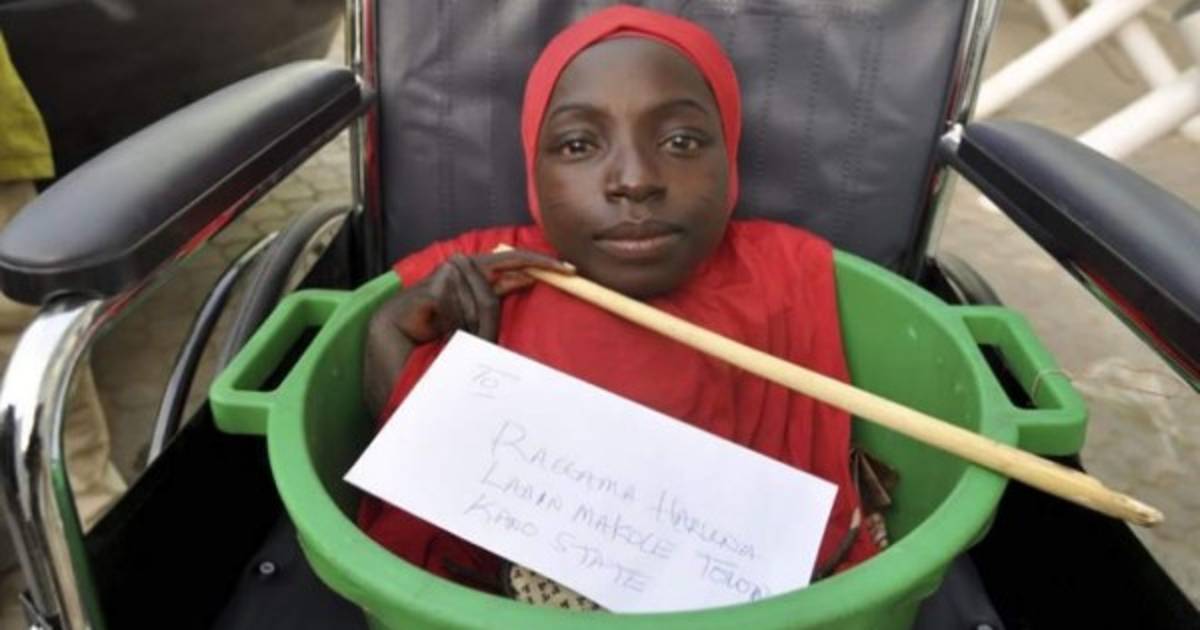 La cruel imagen de Rahama Haruna (19) vivir en una palangana de plástico color verde pidiendo limosna, desgarra el corazón de aquellos que la ven en las redes sociales.