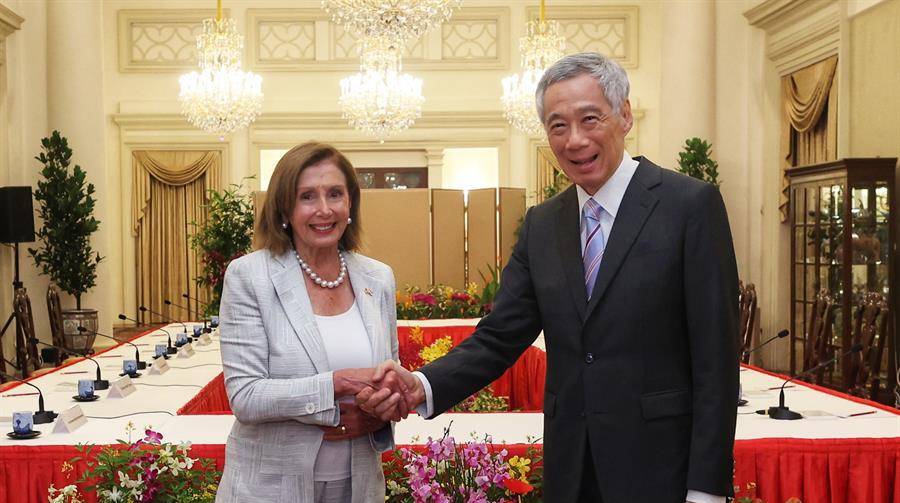 Según un comunicado divulgado por el ministerio de Asuntos Exteriores de Singapur, Pelosi, que lidera una delegación de legisladores estadounidenses, se reunió hoy con el primer ministro singapurense, Lee Hsien Loong, con quien “intercambió posturas” sobre algunos asuntos “clave” regionales e internacionales.