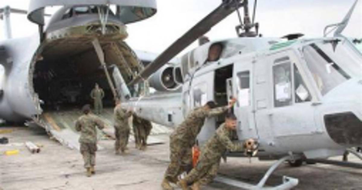 In this image released by the U.S. Marine Corps on Wednesday Aug. 29, 2012, Marines from Marine Light Attack Helicopter Squadron 467 (HMLA-467) unload a UH-1N Huey helicopter in Guatemala City, Aug. 11, 2012. A team of 200 U.S. Marines and four UH-1N Huey helicopters has begun patrolling Guatemalas western coast this week in what a military spokesman says is an unprecedented operation, code named Operation Martillo, to beat drug traffickers in the Central America region. (AP Photo/U.S. Marine Corps)
