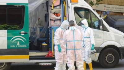 Los hombres encargados de la sepultura, que vestían trajes de protección y máscaras bucales, no permitieron acercarse a la familia hasta que el féretro estuviera dentro de la fosa y fumigado.