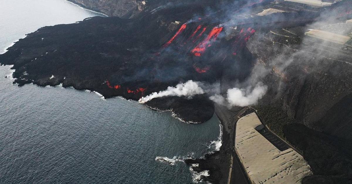 El delta de lava que empezó a formarse en la madrugada del miércoles con la llegada de una de las coladas procedentes del volcán de Cumbre Vieja al océano Atlántico ha engullido ya por completo la playa de Los Guirres por la que encontró su salida al mar.