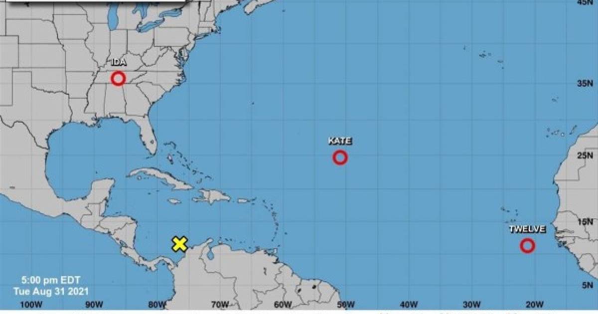 La duodécima depresión tropical del año en la cuenca atlántica se formó este martes al sur de las islas de Cabo Verde, frente a la costa nororiental africana, mientras la también depresión Kate avanza 'pobremente organizada' por aguas del Atlántico al noreste de las islas de Barlovento, en las Antillas Menores.