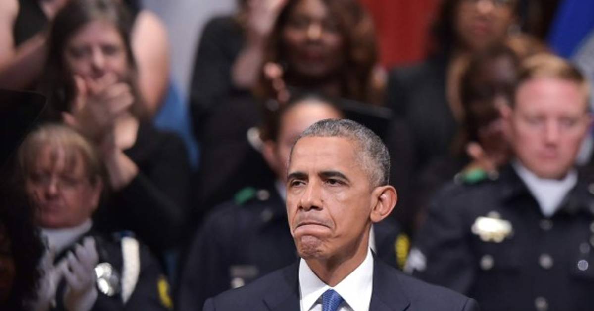 'Estoy aquí para insistir en que no estamos tan divididos como parece. Estoy aquí para decir que debemos rechazar esa desesperación', afirmó Obama al inicio de su discurso en homenaje a los cinco agentes asesinados el pasado jueves, una matanza que ha agitado las tensiones raciales en el país junto con los recientes casos de abusos policiales contra afroamericanos.