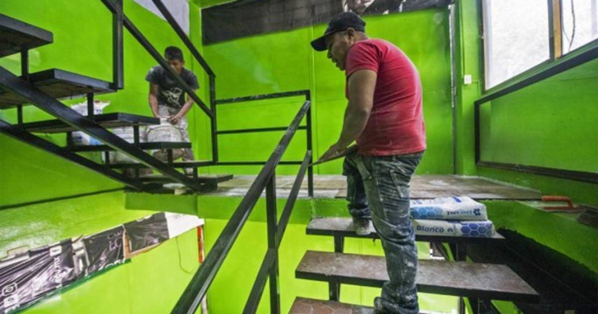 El mexicano Ulises Pérez y Gustavo Contreras trabajan en un restaurante de tacos instalado en un gimnasio cerrado en la Ciudad de México. Foto AFP