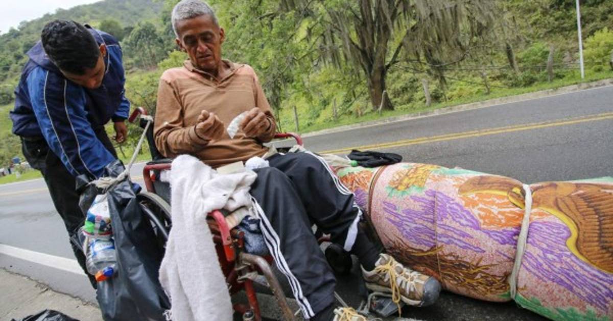 Su hijo Jefferson Alexis lo empuja cuando trepan las montañas de Colombia y lo sostiene cuando se avizora la cuesta abajo. El frío y el calor extremos, que cambian al vaivén de la geografía, son compañeros inseparables.