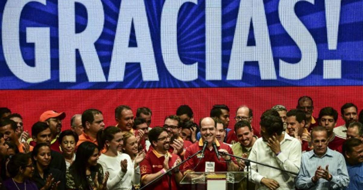 'El mundo y Miraflores deben escuchar el grito de todo un país (...). Lo que viene ahora es que nosotros materialicemos el mandato que nos dio la gente', declaró este lunes en una entrevista radial Julio Borges, presidente del Parlamento, controlado por la oposición.