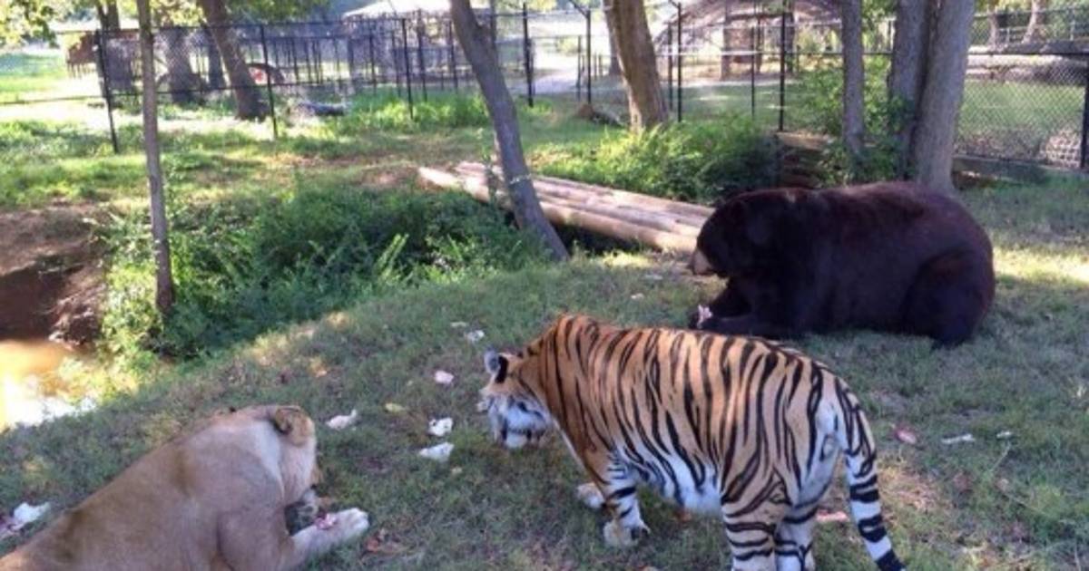 A pesar de ser de diferentes especies y que en otras condiciones podrían ser feroces enemigos, el oso, el león y el tigre empezaron a comer, dormir, jugar y hasta acicalarse entre ellos, y se volvieron inseparables.