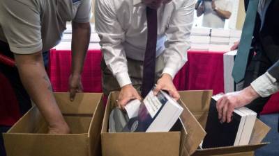 'Espero que sea un instrumento de paz', le dijo en español a Trump, quien respondió en inglés: 'lo leeré'.