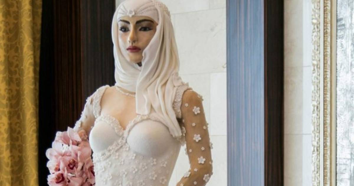 La diseñadora y pastelera británica Debbie Wingham creó un pastel de bodas con la forma de una novia árabe de 1.80 metros de estatura, con valor de un millón de dólares.