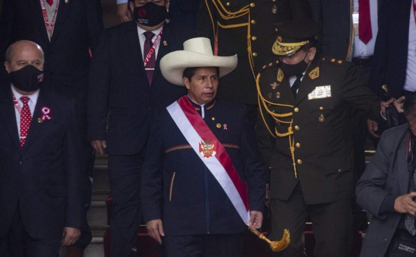 El izquierdista Pedro Castillo prestó juramento como el quinto presidente de Perú en tres años. Foto AFP
