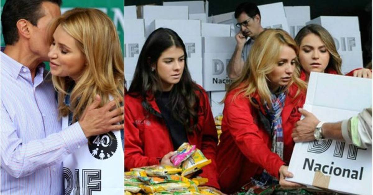 Las imágenes muestran a Peña Nieto y 'la Gaviota' participar en una cadena humana para llenar un camión con donaciones procedentes del Consejo Ciudadano Consultivo del DIF, del que la primera dama es presidenta.