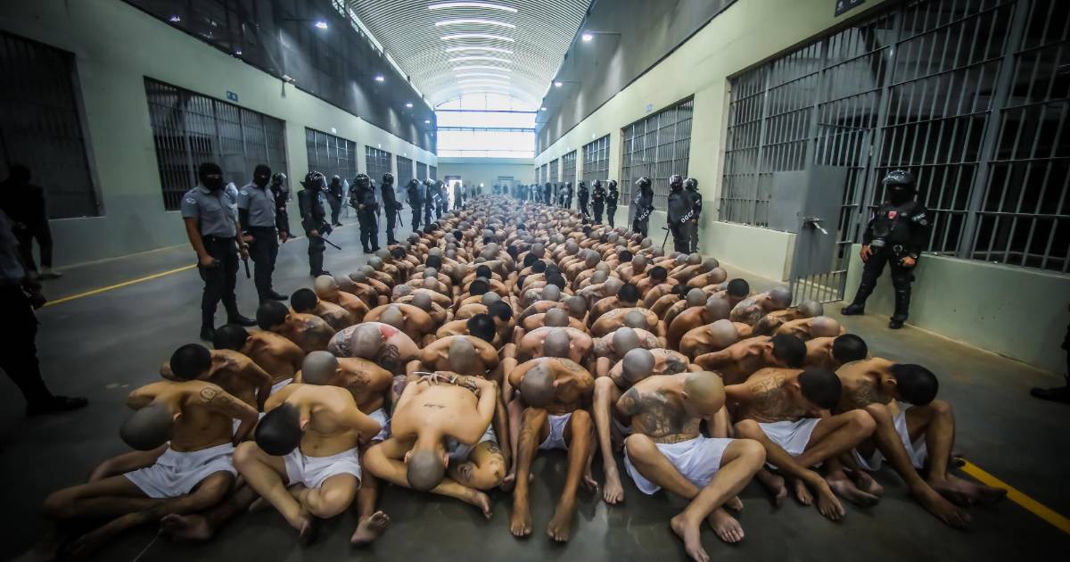 En un vídeo divulgado por el mandatario de El Salvador, se observa a muchos pandilleros -pertenecientes principalmente a la Mara Salvatrucha (MS-13) y a Barrio 18- vistiendo apenas un pantaloncillo blanco y descalzos, ingresando a la cárcel bajo una fuerte custodia policial.