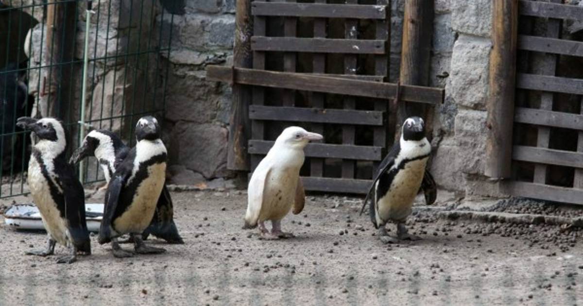 Un pingüino de El Cabo (Spheniscus demersus) albino, un caso rarísimo en esta especie sudafricana en peligro de extinción, fue presentado este viernes por primera vez en el parque zoológico de Gdansk, en el norte de Polonia.