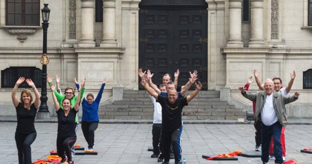 El flamante presidente peruano Pedro Pablo Kuczynski, de 77 años, sorprendió el jueves al poner en práctica una innovación que deberá realizar su gabinete ministerial como paso previo a cada consejo de ministros: una sesión pública de ejercicio en el Palacio de Gobierno.