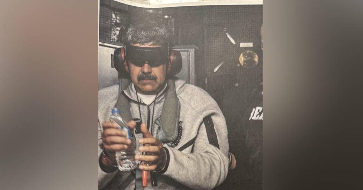 En la fotografía se aprecia a Maduro con los ojos vendados, a bordo del barco estadounidense USS Iwo Jima, que lo traslada junto a su esposa a Nueva York para ser juzgados.