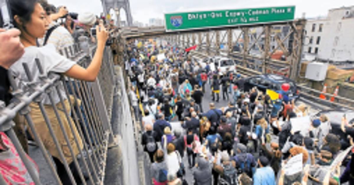Los manifestantes, que desde el pasado 17 de septiembre intentan “ocupar” Wall Street en protesta contra la corrupción, la codicia y los recortes en el presupuesto del Gobierno federal estadounidense, cortaron el sábado uno de los carriles del tradicional puente de Brooklyn, cerca de la Bolsa de Nueva York. La Policía respondió deteniendo a unas 700 personas, la mayoría de ellas liberadas ayer.