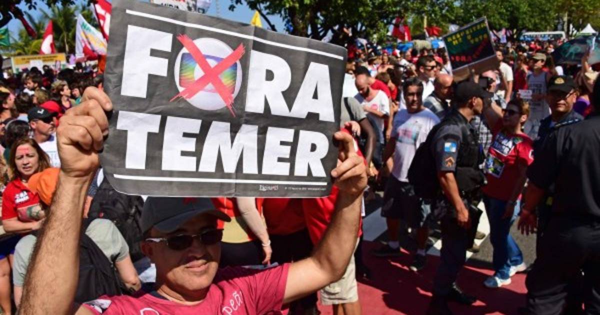 Más temprano, unos 3.000 manifestantes protestaron ruidosamente frente a la famosa playa de Copacabana contra el presidente interino Michel Temer.