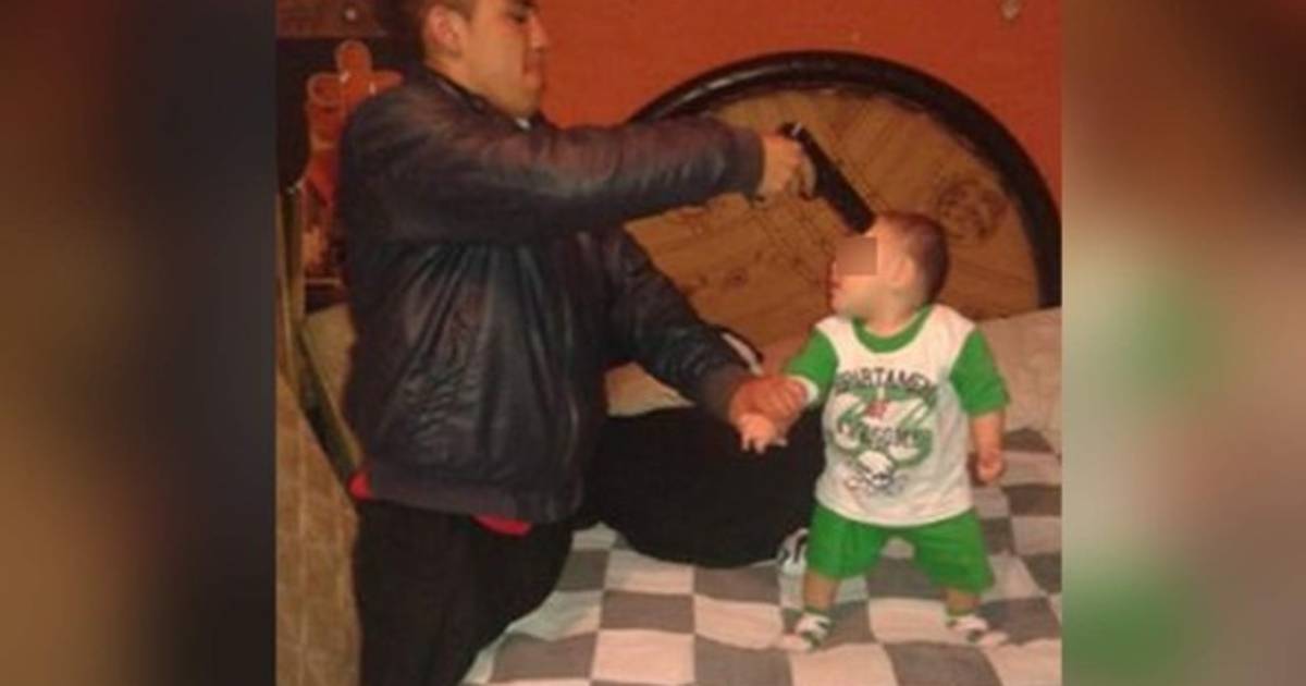 El mexicano Luis Martín Rocha ha causado indignación en las redes sociales al subir fotos de apuntándole a su hijo.
