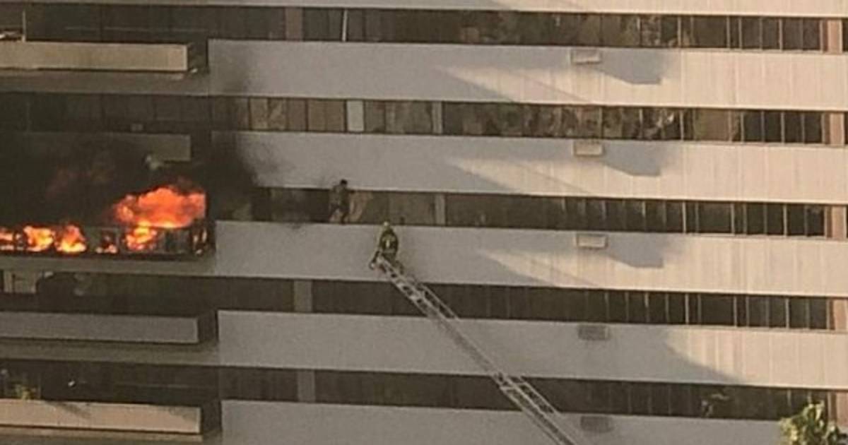 La televisión local mostró las llamaradas que salían del balcón del departamento, así como las operaciones de rescate aéreo, con apoyo de helicópteros, por las ventanas usando las escaleras de los camiones.
