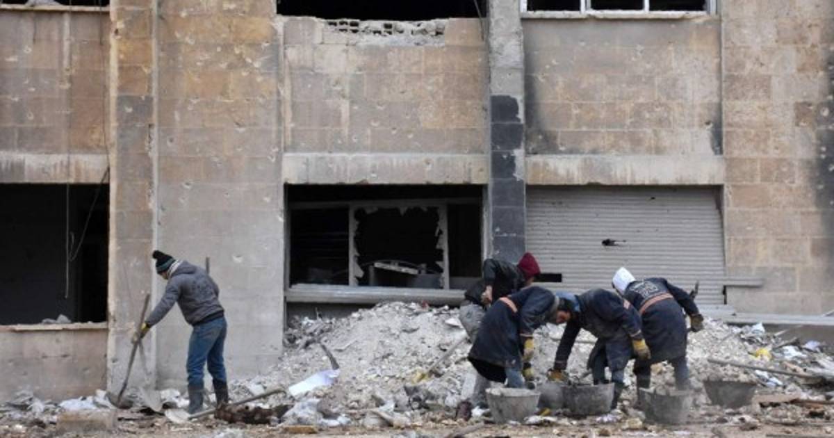 Sirios caminan en el distrito de Zabadia y Salah Eddin en Alepo, Siria. EFE