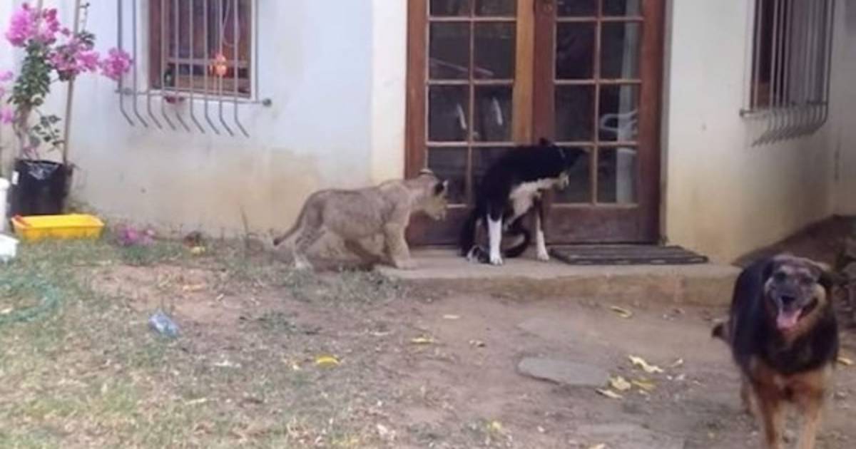 En las escenas captadas por la cámara se puede apreciar a tres perros y a un par de leones cachorros en un refugio de Sudáfrica.