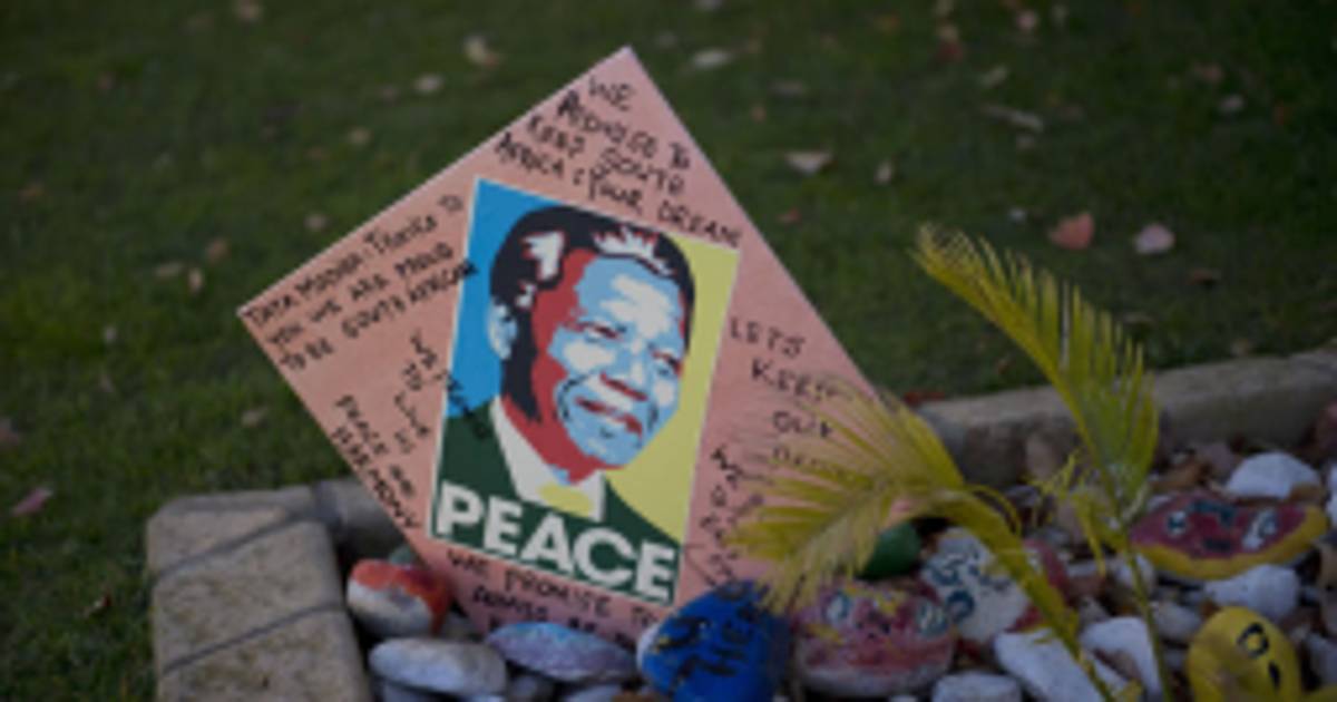 Las hermanas Judd y Amber Rakak, de 7 y 4 años, respectivamente, acudieron a la casa con su padre para revisar varias piedras que habían dejado, y gritaron: '¡Ponte bien pronto, Madiba!'.
