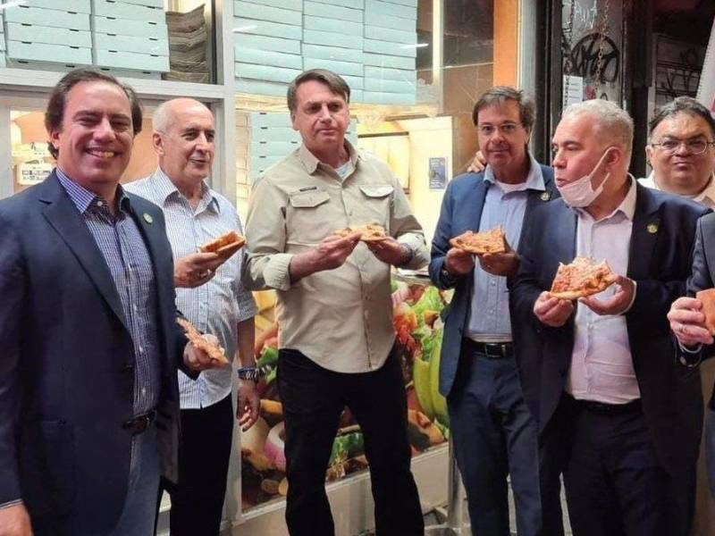 Como cualquier humilde neoyorquino, Bolsonaro cenó este domingo un pedazo de pizza de pie y en plena calle junto a los miembros de su comitiva, según pudo verse en una foto compartida por el ministro de la Secretaría General de la Presidencia, Luiz Eduardo Ramos (@MinLuizRamos).