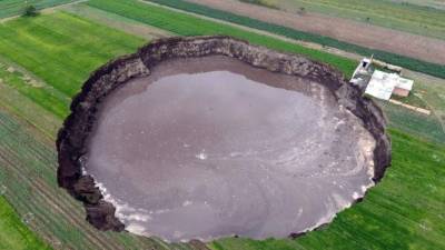 En medio de los campos de cultivo apareció el socavón que ha alertado a autoridades mexicanas en busca de explicaciones. Medios de comunicación mantienen presencia en la zona, a espera de novedades. Incluso, dos perros cayeron en el agujero en los últimos días y fueron rescatados, a pedido del gobernador de ese estado, por bomberos.