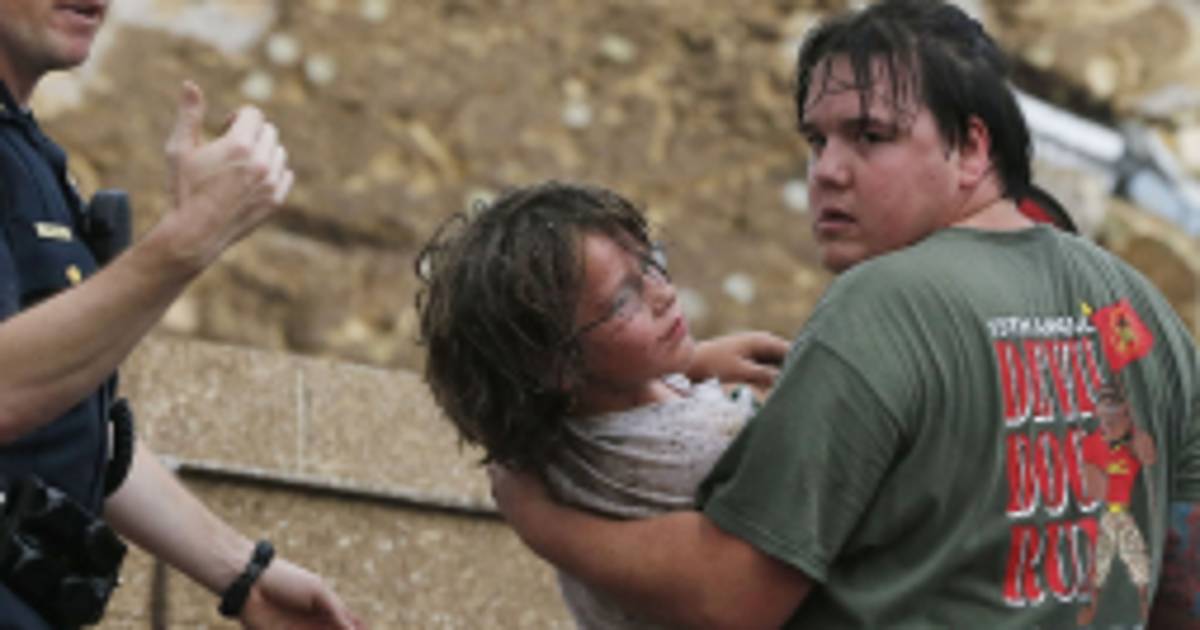 Reporteros de la cadena de televisión local KFOR vieron cómo sacaban de entre los escombros de la escuela primaria Plaza Towers a niños de unos 9 años. Los angustiados padres, mantenidos alejados por los equipos de emergencia, se agrupaban el lunes cerca de los escombros, según los medios locales, que mostraban decenas de socorristas buscando entre los restos.