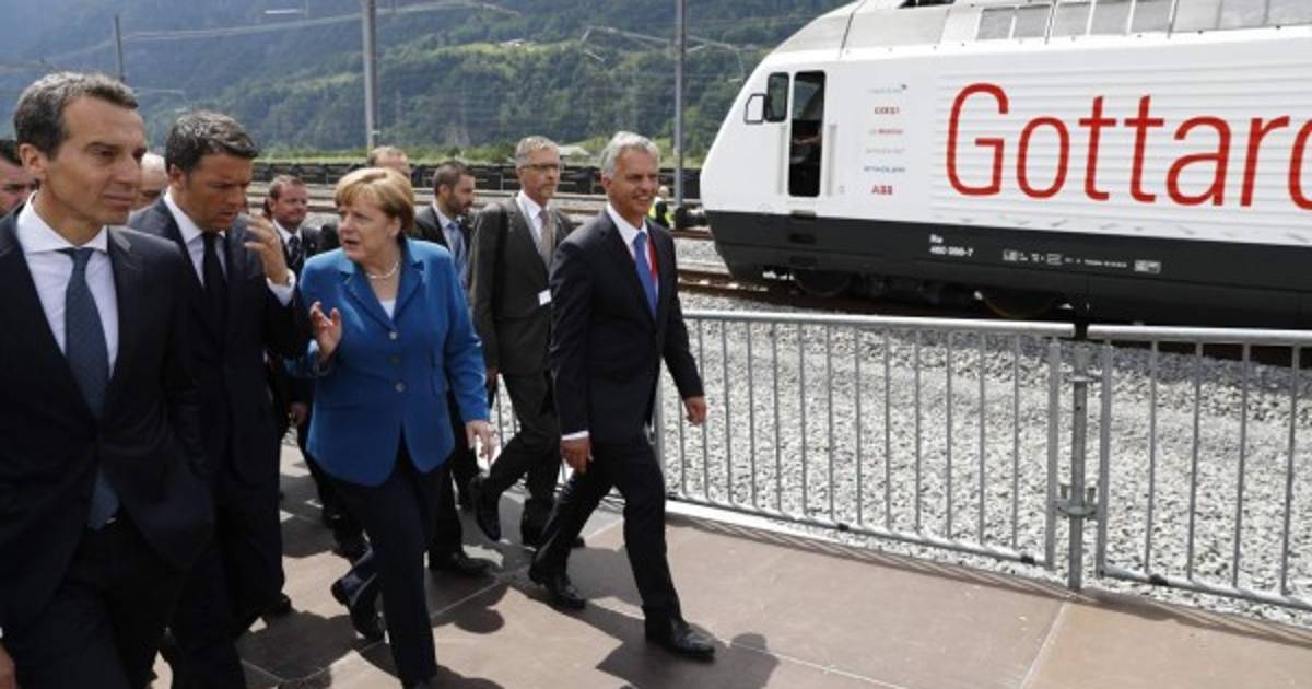 La canciller alemana Angela Merkel, el presidente francés François Hollande y el jefe del gobierno italiano Matteo Renzi estaban a bordo de ese tren 'Gottardo 2016', que hizo el trayecto en 30 minutos.