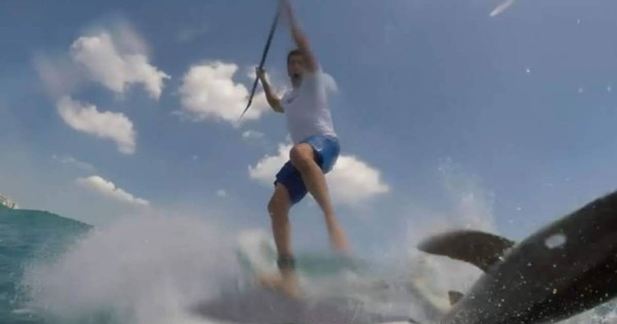 El surfista Maximo Trinidad se llevó un tremendo susto con un tiburón que lo ataca en medio del mar.