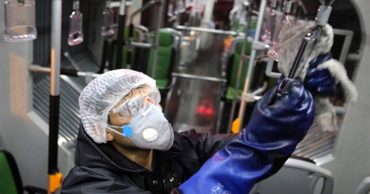 Un trabajador del municipio de Teherán limpia un tren del metro para evitar la propagación de la enfermedad. Foto AFP