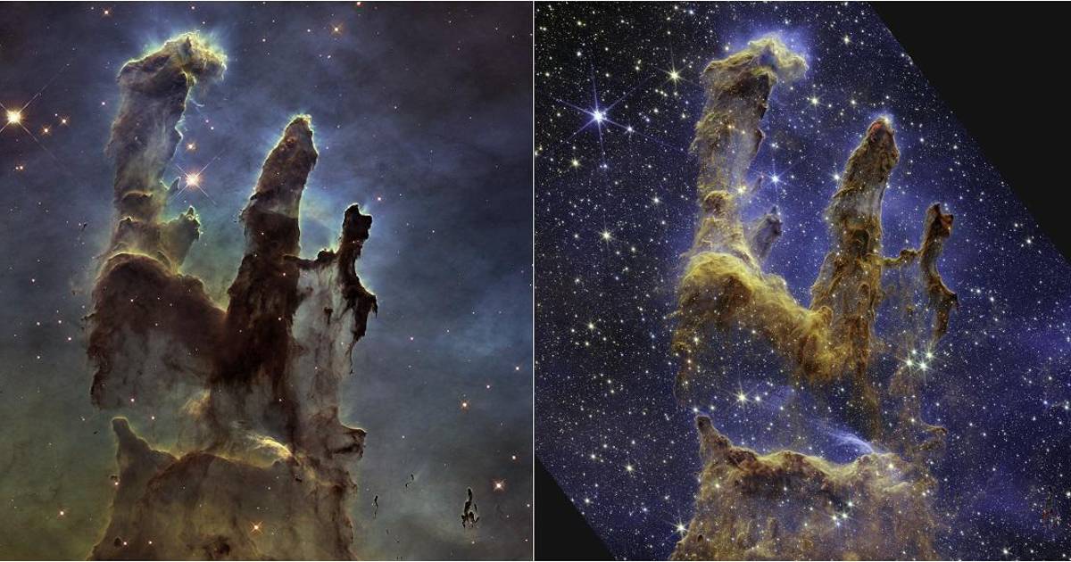 El telescopio espacial de la NASA James Webb ofreció una imagen inédita de los icónicos Pilares de la Creación, una región de aspecto fantasmagórico donde se forman nuevas estrellas dentro de densas nubes de gas y polvo y de la que ahora llega una visión mucho más nítida.