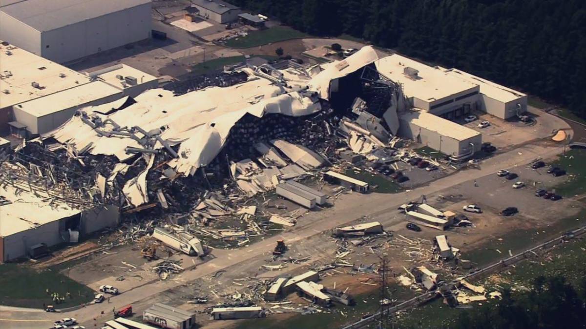 Al menos 16 personas sufrieron heridas, 2 de gravedad, cuando un tornado se abatió en Carolina del Norte y causó daños graves en varias estructuras, incluida una planta de la firma Pfizer, que tuvo que ser evacuada.