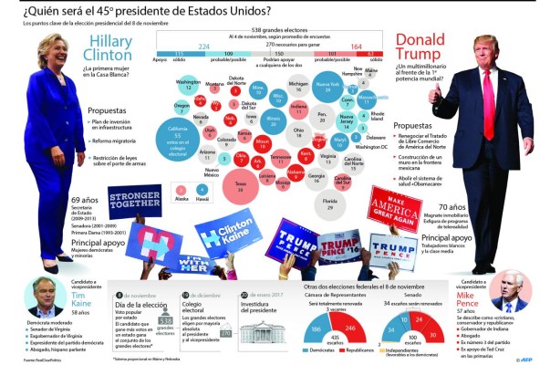 Trump se enfocará en estos últimos cuatro días en visitar los estados clave de Ohio, Pensilvania, Florida, Carolina del Norte o Wisconsin, para conseguir una victoria que le obligaría a arrebatar por sorpresa alguna plaza en la que Clinton tiene ventaja en los sondeos, como Pensilvania, Wisconsin o Michigan, además de imponerse en todas las plazas más competitivas.