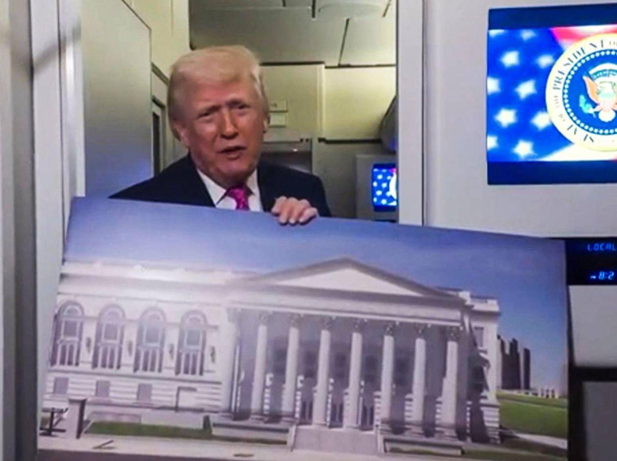 "Tenemos cristales totalmente blindados; tenemos techos y cubiertas a prueba de drones", detalló mientras mostraba los planos arquitectónicos. "Desafortunadamente, vivimos en una época en la que eso es algo bueno", agregó Trump, en medio de la guerra que EE.UU. e Israel lanzaron contra Irán.