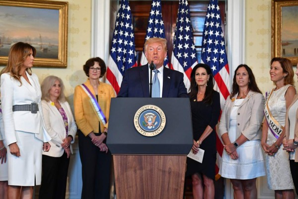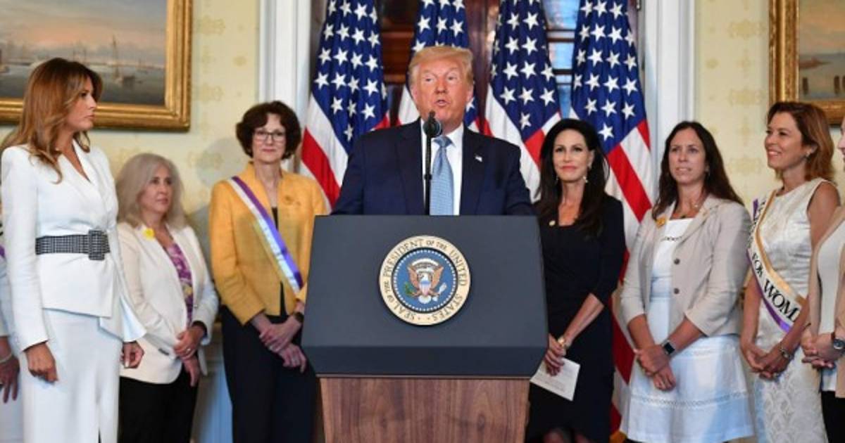 En una ceremonia que conmemoró la ratificación de la Enmienda 19 de la Constitución, que reconoció el derecho de las mujeres a votar, Trump dijo que aquello 'fue una victoria monumental para la igualdad, la justicia, una victoria monumental para Estados Unidos'.