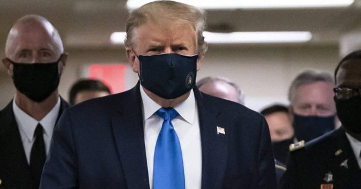 El presidente, Donald Trump, se mostró este sábado por primera vez desde el inicio de la pandemia con un mascarilla en público, cediendo a una intensa presión para establecer un ejemplo de salud pública cuando el coronavirus avanza en Estados Unidos.