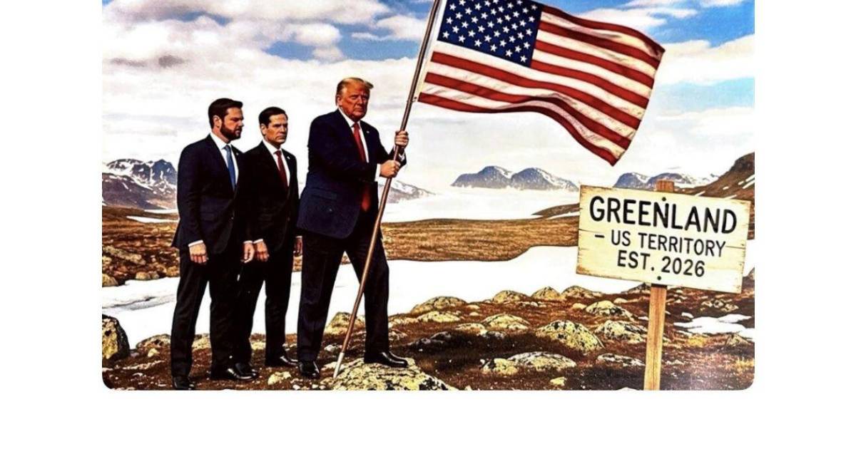 Su red social, Truth Social, fue este martes de nuevo el altavoz con el que el líder republicano dejó constancia de sus ambiciones. En la imagen aparece plantando la bandera estadounidense flanqueado por el secretario de Estado, Marco Rubio, y por el vicepresidente, JD Vance.