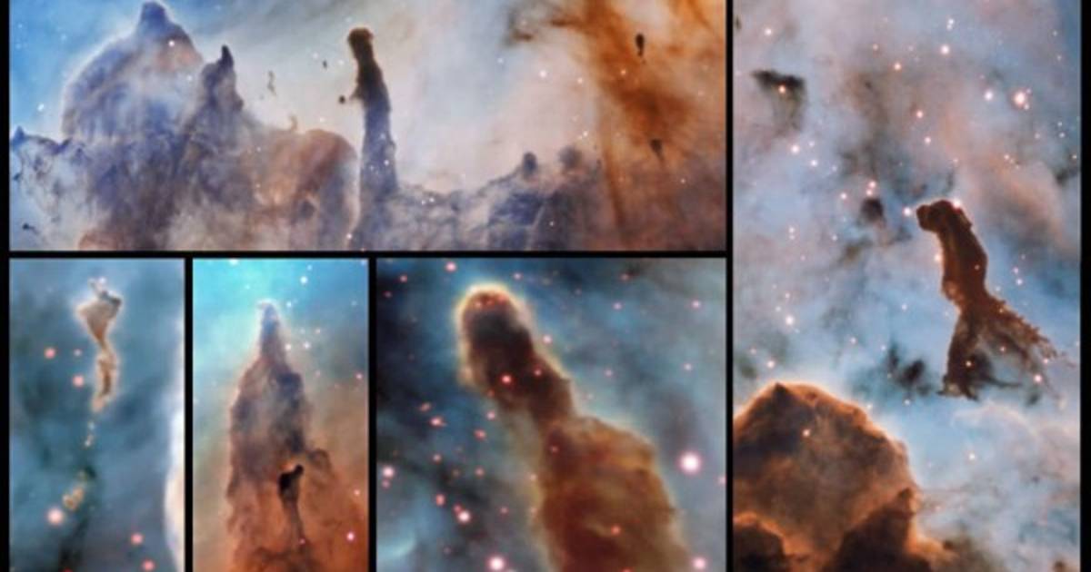 Un equipo internacional de astrónomos ha captado imágenes de las enormes estructuras en forma de torres que hay en el interior de la nebulosa de Carina, inmensas nubes de polvo y gas dentro de un centro de formación de estrellas que se encuentra, aproximadamente, a 7.500 años luz de distancia.