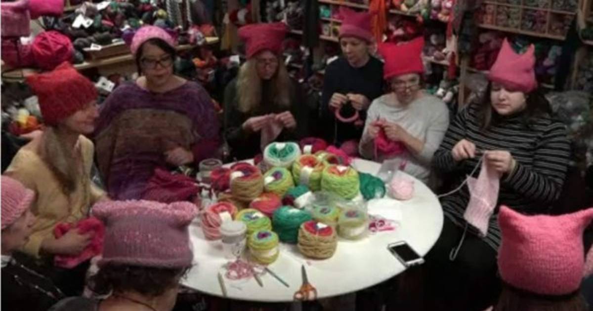 Estas mujeres tejen a contrarreloj gorros rosa con orejas de gato. Miles los usarán el sábado en la Marcha de las Mujeres. Se llaman 'pussy hats'.