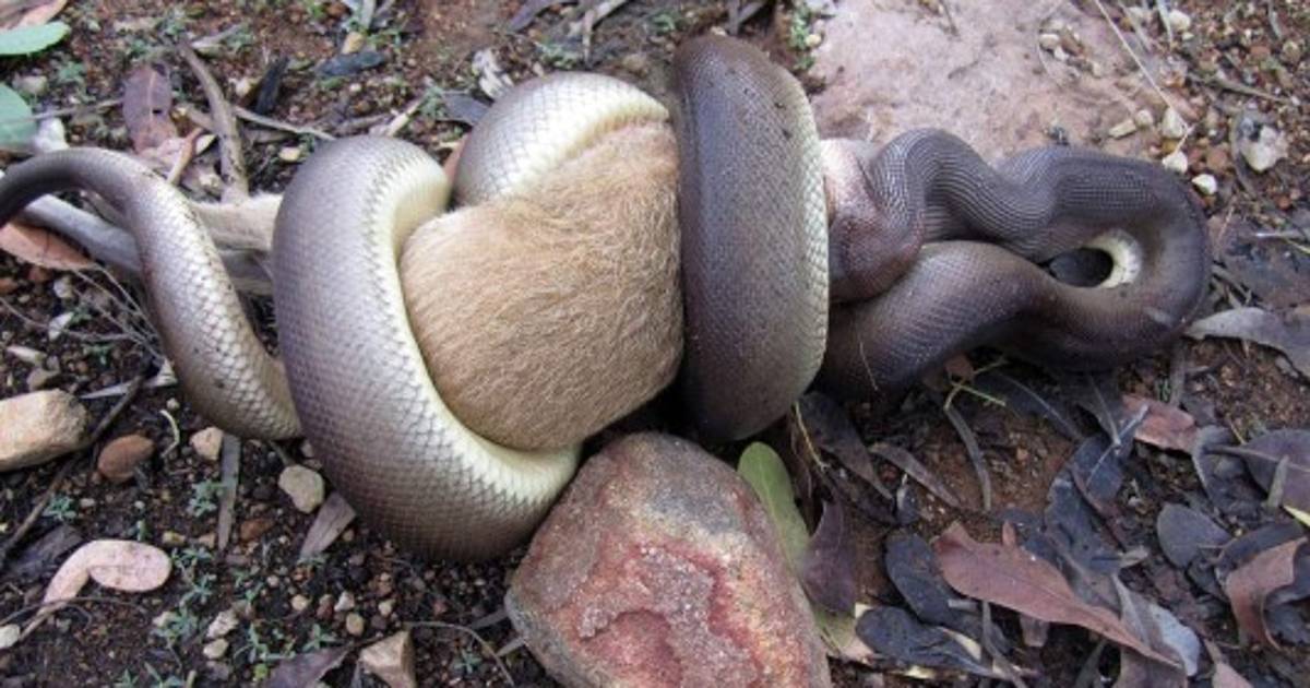 Una pitón se comió un canguro entero