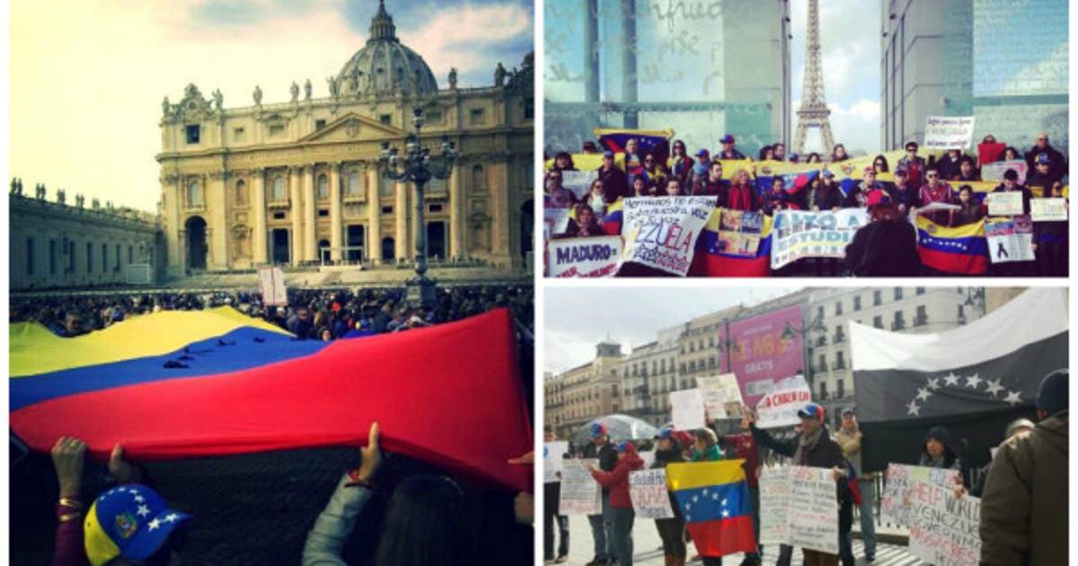 También algunos venezolanos en El Vaticano extendieron la bandera de Venezuela en apoyo a los estudiantes para hacerse sentir fuera de nuestra fronteras. También en Madrid grupos de venezolanos opositores al gobierno de Maduro se manifestaron.