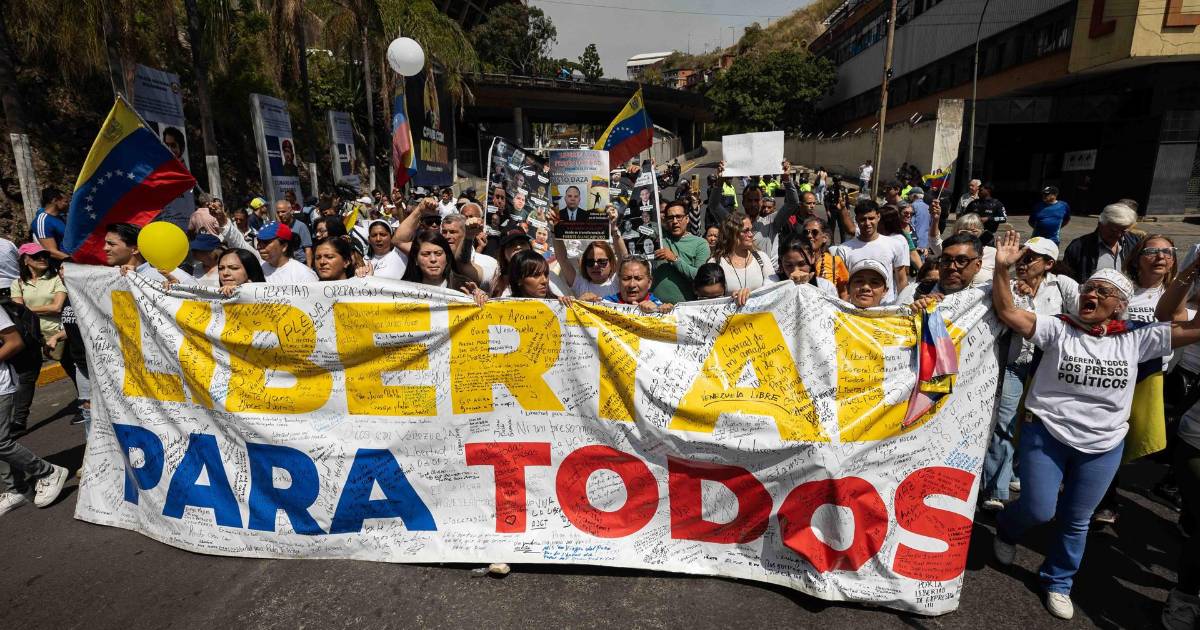Este sábado, activistas exigieron la liberación de los presos políticos, en un contexto en el que el Parlamento promete aprobar una ley de amnistía para estos detenidos, una propuesta del Gobierno encargado de Delcy Rodríguez.