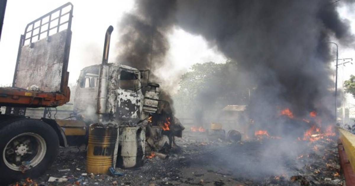En medio de los disturbios en el puente Santander, en Ureña (Táchira, este), que limita con Cúcuta, la diputada opositora Gaby Arellano precisó que 'quemaron dos de las cuatro gandolas (camiones)'.